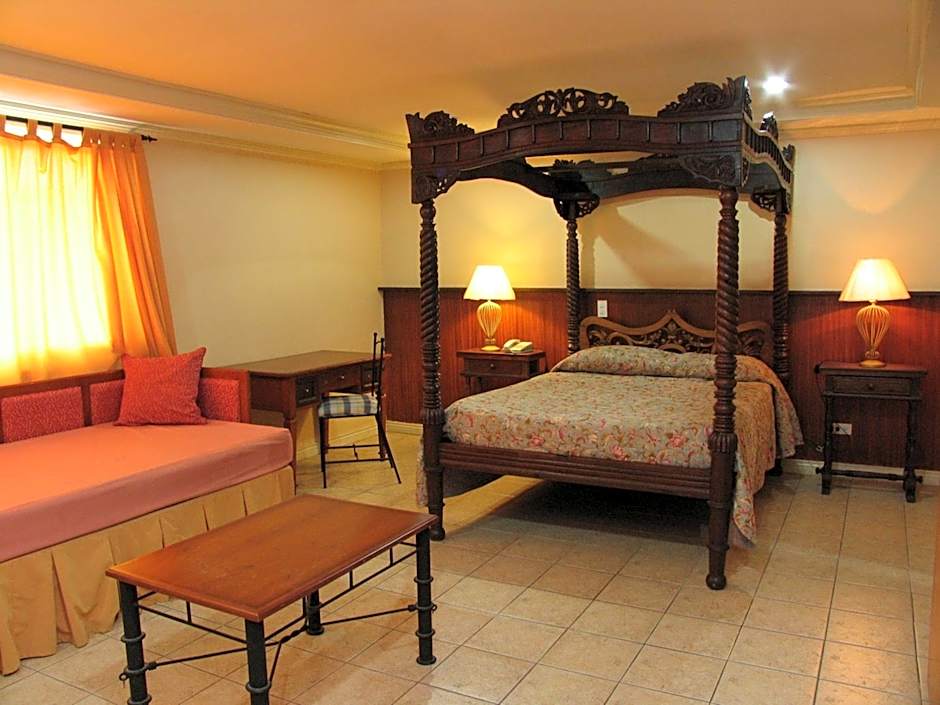 This suite has air conditioning, sofa seating area with cable TV, and a private bathroom with bath and shower together with free toiletries and a hairdryer.